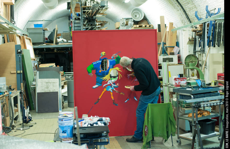 - Le dessinateur Riff réalise ici le passe-tête qui trônera dans l’une de nos salles de cours pendant l’inauguration. Aujourd’hui, ce dernier est dans notre extension. N’hésitez pas à venir vous faire tirer le portrait !