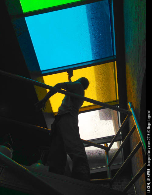 - Pose des gélatines d’extension. Oeuvre de Roger Legrand.
